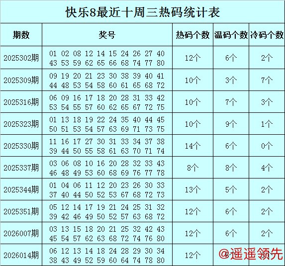 赵灵芝快乐8第2026021期周三奖号冷温热码分析